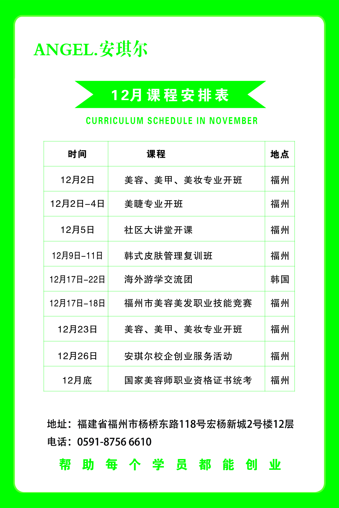 學校地址:福州市楊橋東路118號宏楊新城2號樓12層