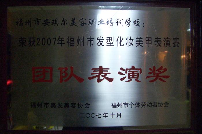 2007年  獲得“福州市發型化妝美甲技術表演優秀獎”稱號