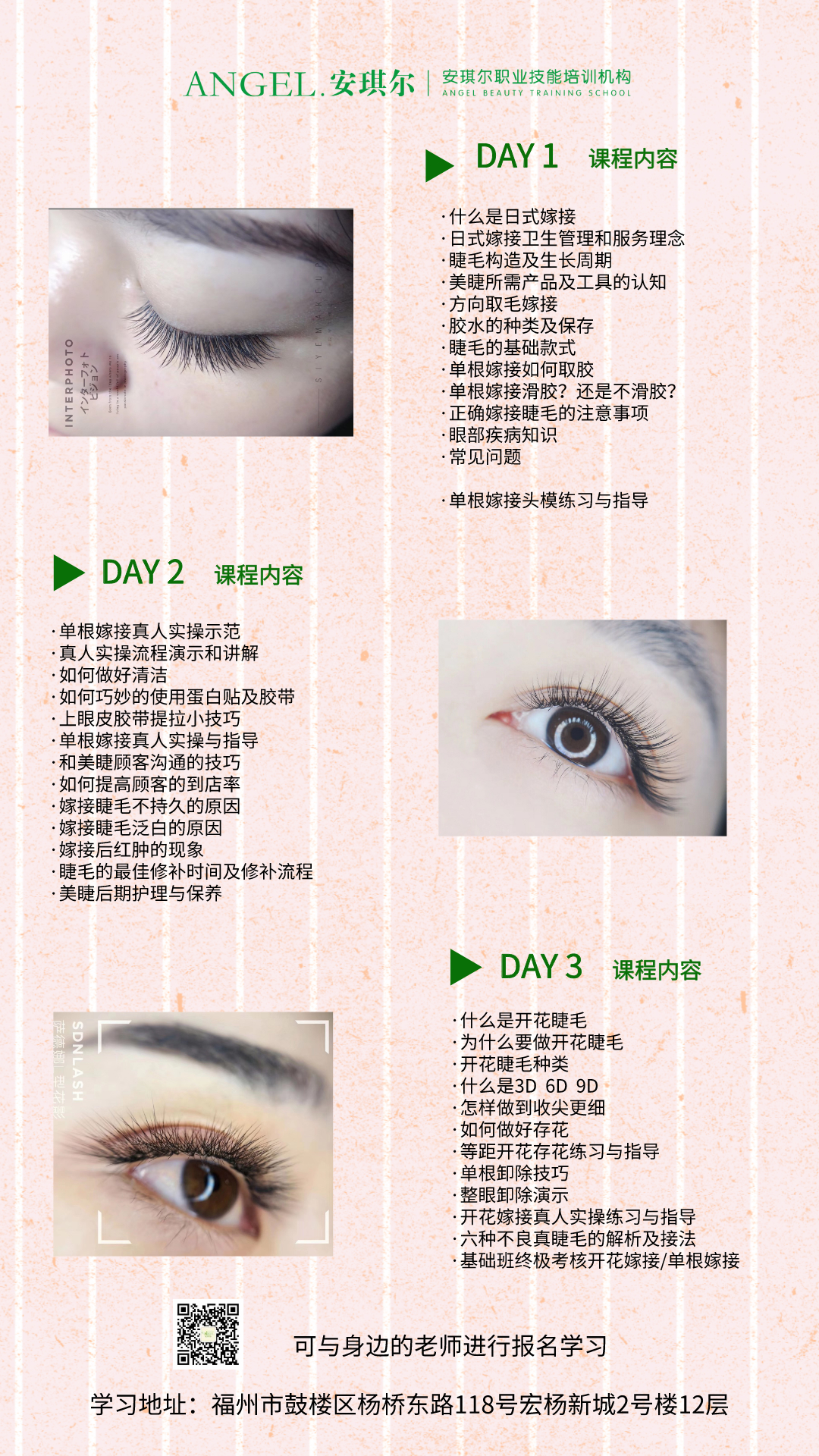 2019年12月2日安琪爾高端美睫班開課啦,為期三天。美睫班學費為1580元送學習工具